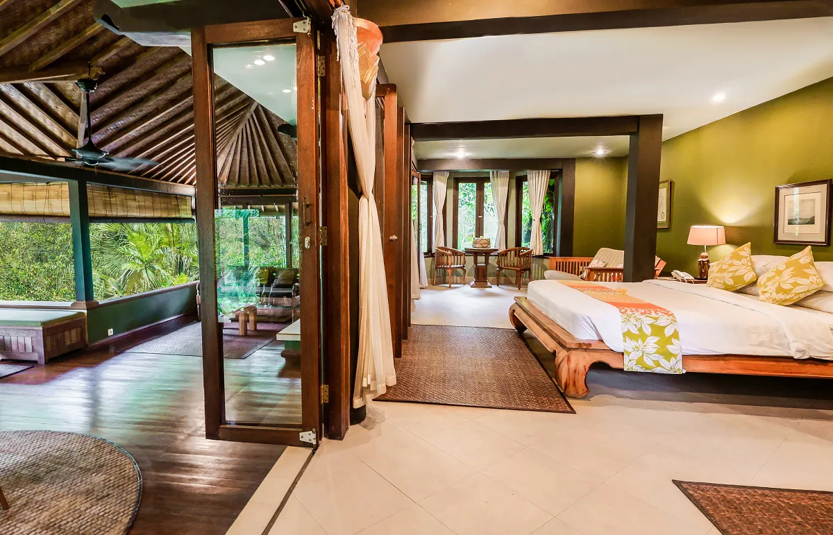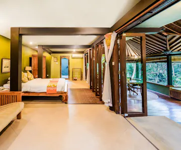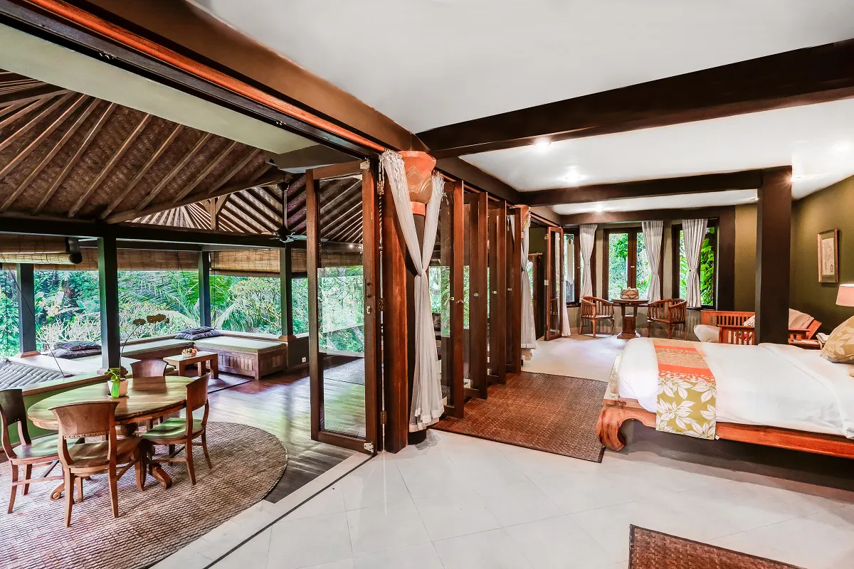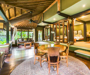 These spacious suites feature semi-outdoor bathrooms with showers and terraces overlooking the tropical gardens.